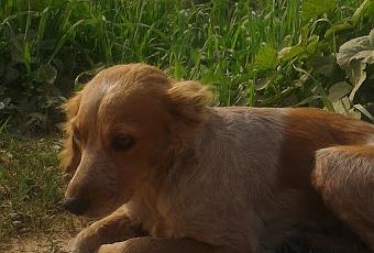 Nos la encontramos moribunda en los arrozales de Isla Mayor hace aproximadamente tres semanas. La hemos alimentado y desparasitado. La perrita se encuentra en buen estado y actualmente en celo.