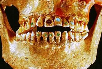 Primero fueron los egipcios. De 200 años antes de Cristo son algunas de las calaveras encontradas con restos de piedras preciosas en los dientes. Pertenecían a faraones, pero los primeros restos arqueológicos sobre tratamientos dentales se remontan al 2.600 a.C. Eran pergaminos donde se hacía referencia a médicos y curanderos que atendían problemas bucodentales.