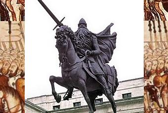 Fotografía sacada de este enlace.Entre tanto movimiento destaca la figura de don Rodrigo Díaz de Vivar, que estaría a la altura de tan tremendas exigencias históricas, pues pasó de ser héroe a villano sin perder su compostura caballeresca; de alférez a mercenario, sin olvidar la lealtad hacia su Rey, acudiendo a las llamadas de éste siempre que fuera necesario, olvidando rencillas y desaires pasados.