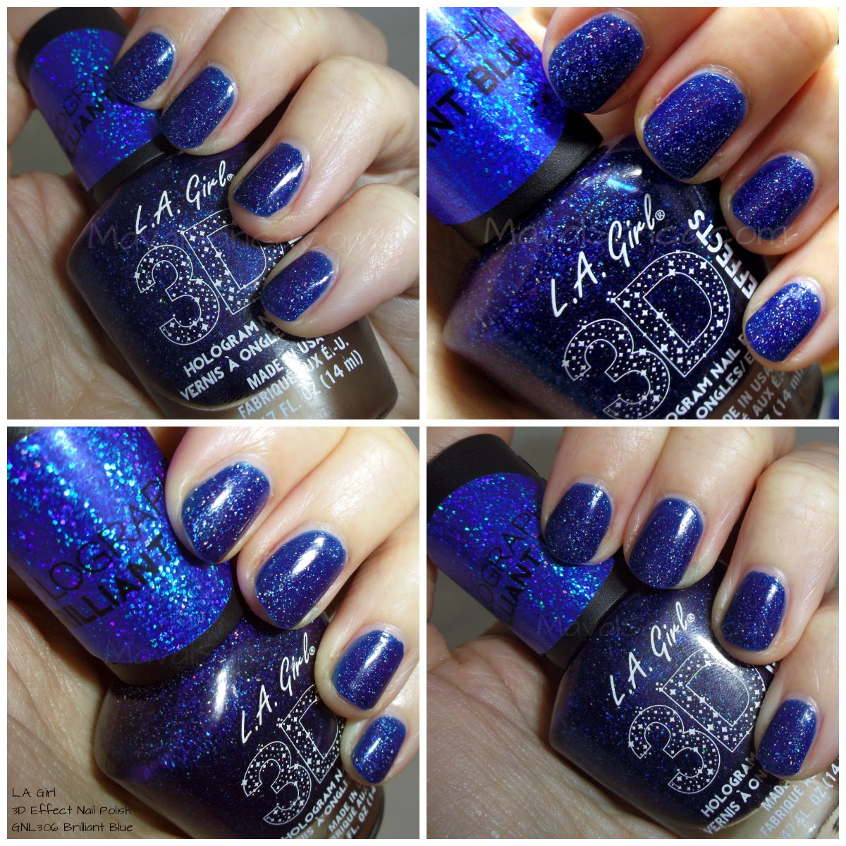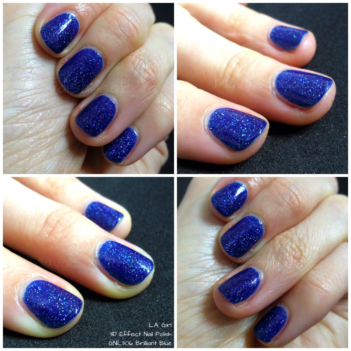 El Brilliant Blue tiene una base azul eléctrico semi transparente.En ella están disueltos glitters holográficos muy pequeños.Éstos glitters son tan pequeños que no le aportan textura al esmalte de uñas.De este modo queda la superficie de la uña pulida una vez aplicado.Brilliant Blue has a semi transparent electric blue base. Whithin are tiny holographic glitters dissolved. These glitters are so small that you doesn´t add texture to the nail polish. So nail surface it's polished once applied.Brilliant BlueGNL 306 L.A. Girl3D Effects