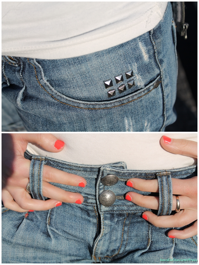 I combined in this case with a casual look consisting of shorts Studded Pull & Bear, Basic White bought recently in a promotion of Lidl, bomber in gray and green accents Bershka and quilted handbag in white from Suiteblanco.