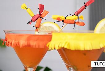Básicamente consiste en decorar tus copas de siempre con "petardos" y una guirnalda verbenera, reutilizando 4 chorradas que seguro que ya tienes en casa. Y de paso, marcarte un cocktail especial, que podrás servir con o sin alcohol.