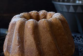 - Sacar del horno y dejar reposar sobre una rejilla durante 10 minutos. Desmoldar y dejar que termine de enfriar sobre la rejilla antes de espolvorear con azúcar glass.