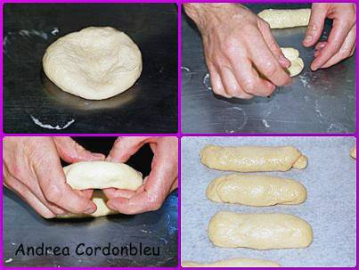 Se deja reposar en bloque (toda la masa en la mesa) durante unos 15 minutos.Se les da la forma de suizo, de bollo, caracola de crema….
