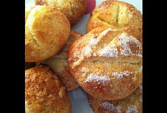 250 ml de leche100 ml aceite de girasol 50 gr de azucar40 gr de levadura fresca3 huevos650 gr harina SalPreparaciónEn un recipiente echamos toda la leche a temperatura ambiente , el aceite de girasol el azúcar y la levadura fresca , removemos bien que no queden grumos.Ahora vamos a batir dos huevos . Lo ponemos todo en un recipiente grande con la sal y amasamos . Cuando hayamos conseguido la masa , tapamos con papel film y dejamos 1/2 hora para que suba su volumenAhora vamos hacer los brioses . Hacemos bolitas con nuestra masa .Las vamos colocando en la fuente de horno , hacemos un corte en medio ,las pintamos con huevo batido , ahora tiraremos por encima el azúcar ( yo lo disuelvo en agua que quede un liquido espeso ) 180º 20 minutos .FÁCIL NO ? LISTOS PARA COMER