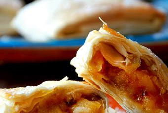 La receta dehoy, es ideal para disfrutarla con ritual.Encenderemosla chimenea, preparamos un buen té al azafrán, descolgaremos todos losteléfonos y nos dispondremos a leer Crónica de una muerte anunciada, mientras,los troncos chisporrotean en el hogar.Una perfectacombinación para desconectar. Es lo que procede en un lunes 21N como hoy.Se trata de unbriouat relleno de una compota de manzana algo especial. La acompañamos conciruelas pasas, dátiles y uvas pasas.¿Has encendidola chimenea? ¿Has descolgado los teléfonos?... no te olvides de desconectar eltelevisor, aparato de radio, internet o cualquier otro elemento extraño, quepudiera o pudiese contaminar tan preciado ritual. Por la libertad.