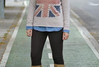Hola bloggeros!! Para terminar la semana, look con bandera británica. Aunque es de la temporada pasada, tengo que decir que ya desde hace varias temporadas me encantan las prendas con este estampado.Decidí combinarla con leggins marrones, camisa denim y botas de montar, que aportan un aire formal al outfit.Complementos, pulseras de TIQUISMIQUIS, ya os enseñé otros modelos aquí, y anillo, de CICLÓN OUTLET, que tiene un diseño muy original y bonito.Muchas gracias por vuestras visitas y comentarios, y feliz fin de semana.