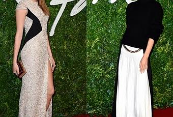 Las dos premiadas de la noche: Cara Delevingne (mejor modelo) y Victoria Beckham (mejor diseñadora) fueron muy aclamadas en la alfombra roja, la primera con un maravilloso diseño de pailletes de Burberry Prorsum y la segunda vestida por ella misma con el clásico binomio blanco y negro.