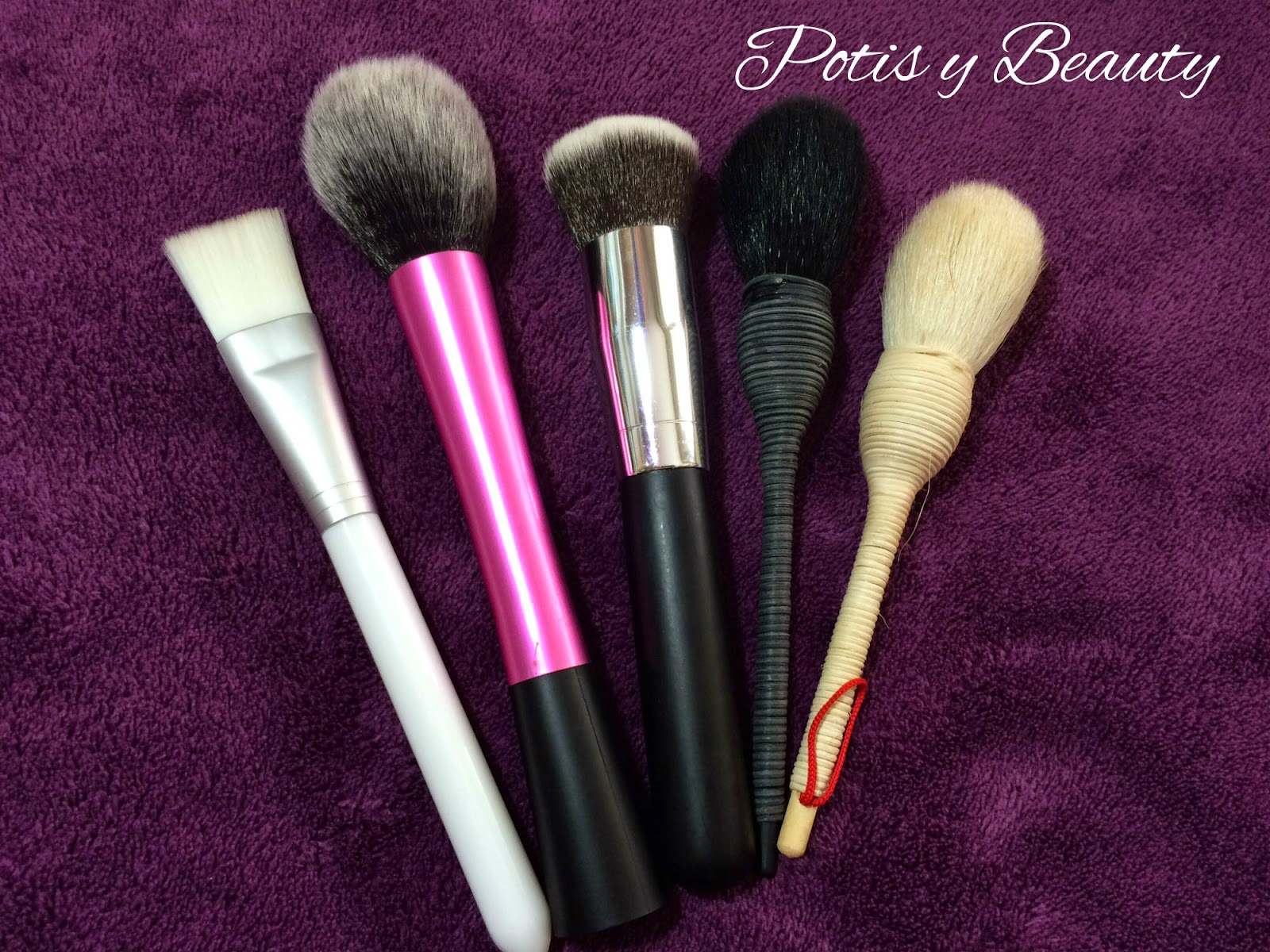 De izquierda a derecha en la segunda foto:Imitación de una de Tony Moly, es de pelo sintético, color blanco y suave. La uso para aplicarme las mascarillas en el restro. http://www.buyincoins.com/item/33983.html#.VFy8vfmG-SoImitación a la blush brush de real techniques, pelo sintético, un poco deformada XD y muy suave. La uso para colorete o incluso la he usado para aplicar polvos traslucidos. http://www.buyincoins.com/item/52431.html#.VFy9OvmG-SoImitación a la F82 de sigma, pelo sintético, muy suave, la uso para aplicar la base. http://www.buyincoins.com/item/35627.html#.VFy9z_mG-SoImitación yachiyo de nars, aquí pongo el link de las dos. La negra la uso para aplicar el iluminador y la blanca para colorete. http://www.buyincoins.com/item/20802.html#.VFy-OvmG-SoSiempre, siempre, se ha caído algún pelito, lógicamente no podemos exigir más por el precio que tienen. He de decir que la yachiyo negra el primer día que me llegó al lavarla me destiñó muy poco unos chorritos nada mas. Me encantan estas brochas y no dudaría en volver a comprarlas. Pasemos a ojos!!