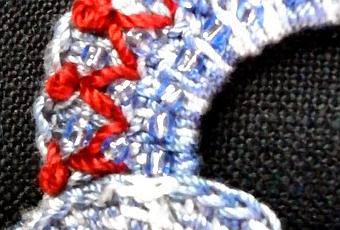 Más de 80 bolitas de cristal cosidas a mano.Algún punto bordado.