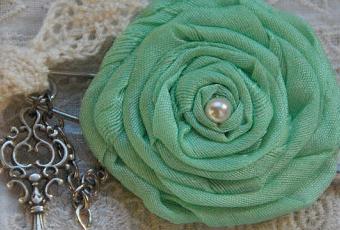 Inspirado en las grandes damas de los años 20, este broche recoge la elegancia de aquella época sin perder su toque de modernidad. Puedes lucirlo a cualquier hora del día ya que sus suaves tonos en verde, beige y blanco y su línea sencilla permiten combinarlo con un sin fin de prendas.