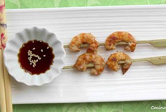 BROCHETA DE LANGOSTINOS EN SALSA DE SOJA