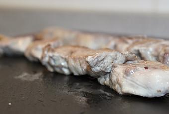 Lo primero que vamos a hacer es macerar la carne. Esta receta también podemos utilizar carne de cerdo o ternera. Cogemos un bol echamos el vino tinto, 3 cucharadas de mayonesa y rallamos la cebolla. He rallado la cebolla porque das más sabor a la maceración. Ahora salpimentamos el magro de pollo al gusto y lo introducimos en el bol. Lo mezclamos todo bien y lo dejamos en la nevera tapado con papel film durante mínimo 8 horas.Cuando haya pasado ese tiempo, cogemos unos pinchos y vamos poniendo la carne. Tenemos puesta la carne en los pinchos, calentamos la plancha o la parrilla y lo hacemos por cada lado. Tendremos una forma riquísima y diferente de hacer unas brochetas. Podemos poner entre el magro de pollo, pimiento rojo, pimiento verde o cebolla pero eso es al gusto de cada uno.