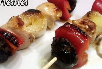 1.- Montamos las brochetas con los ingredientes que hemos seleccionado.