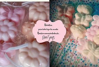 Para la comunión de Samuel sus papás escogieron unas brochetas de jabones las cuales fueron variadas tanto en figuras como en colorido.