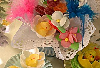 Flores y pollitos de oblea (en época de Pascua)