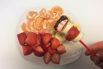 Y allí redescubrí una idea estupenda para que los niños coman fruta (aunque a los míos les encanta): brochetas de frutas con chocolate.