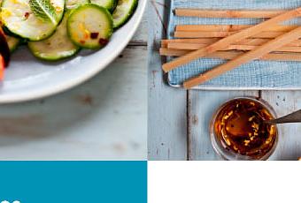 Para acompañar estas brochetas nada mejor que una buena ensalada de calabacín marinado.