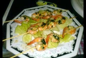 En el mortero machacamos los 6 dientes de ajo, junto con el perejil y un chorro de aceite, reservamos.Pelamos los langostinos sin quitarle la cola, salpimentamos, en una parrilla, ponemos aceite y dejamos que humee,incorporamos los langostinos trinchados y dejamos freír a fuego lento, para que se hagan bien y les damos la vuelta, cuando veamos que están un poco dorado, se le añade el aliño por las dos caras,dejamos tostar un poco el ajo y listo para tapear. Buen provecho.
