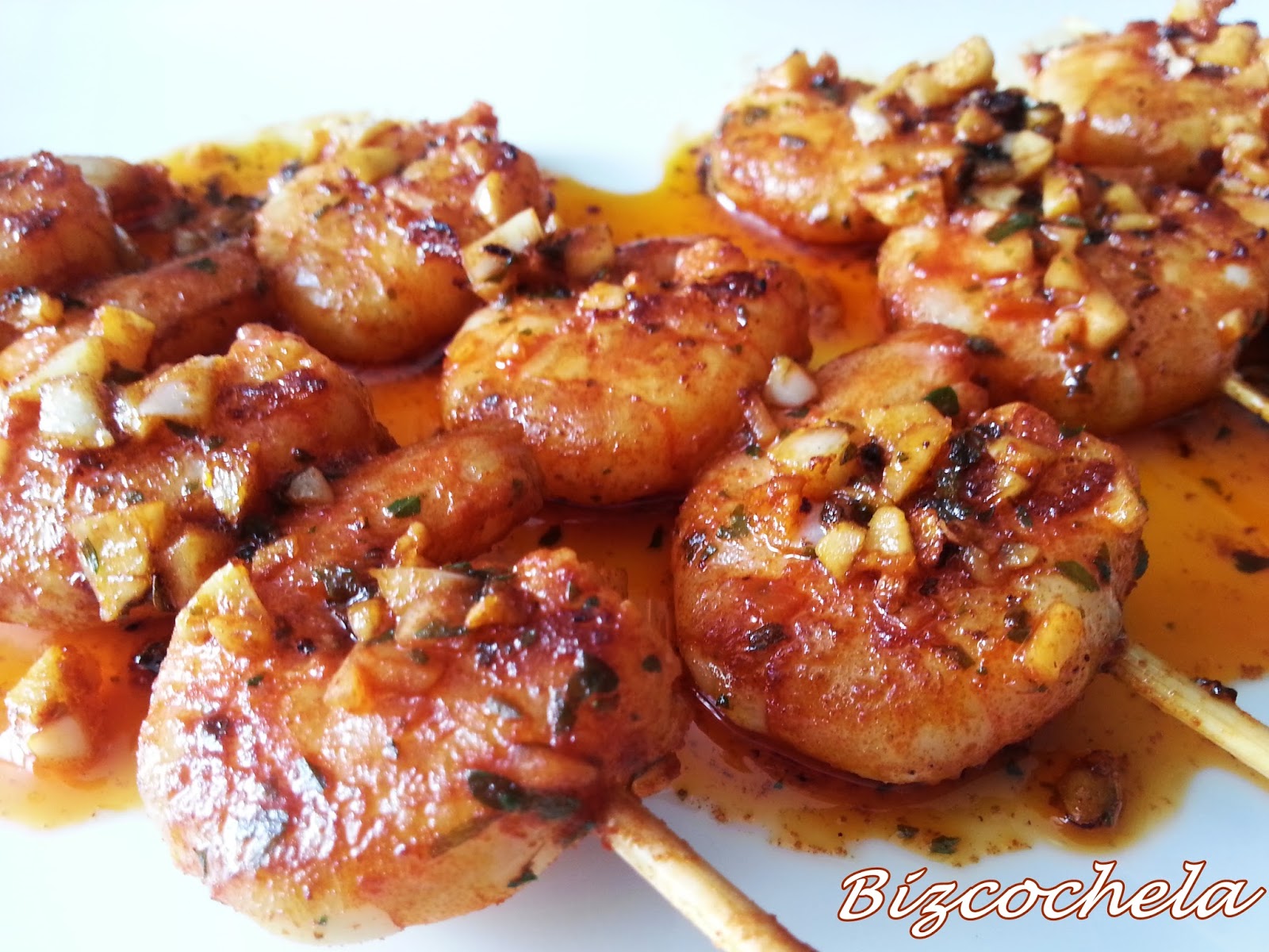 Vamos hoy con un aperitivo sencillo y riquísimo, unas BROCHETAS DE LANGOSTINOS AL AJILLO, perfectos para cualquier ocasión, a mí me encantan.