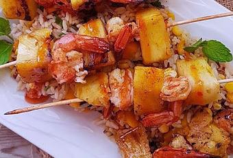 Estas brochetas con langostinos conquistan a todo el mundo tanto por la vista como por el paladar.