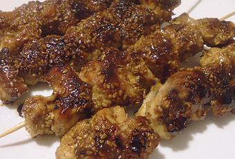 Las brochetas como sabéis son pequeños bocados que van ensartados en un pincho. Aquí lo típico que puedes encontrar en el super son los pinchitos morunos, que son los trocitos de carne de cerdo aliñados principalmente con pimentón, aunque hay muchos tipos de brochetas de diferentes tipos de carne, de carne con verduras, de gambas, de sepia o brochetas de fruta, uno puede poner en el pincho lo que uno quiera, ya sea dulce o salado. Yo os propongo unas brochetas de pollo con sésamo, soja y miel. Es un aliño de estilo japonés, si os gusta la soja y la miel, las que tenéis que probar, la carne queda muy jugosa. Y como sugerencia podéis completar este plato acompañándolo de arroz blanco y salsa de soja.