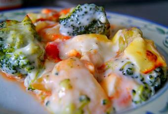 INGREDIENTESBrocoli2 Patatas3 HuevosTomate fritoHarinaAceite de olivaLechePimienta blancaNuez moscadaOréganoSalQueso de lonchas