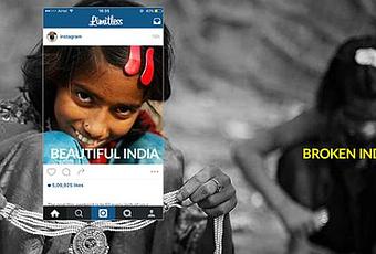 Hace unos días publiqué un interesante proyecto de la fotógrafa Chompoo Baritone que mostraba en tono de humor cómo el encuadre puede condicionar las fotos que publicamos en Instagram. Pues bien, utilizando el mismo recurso, los chicos de Limitless han creado la serie de fotografías "Broken India" en la que denuncian el estado en el que se encuentra su país y que no se suele mostrar al mundo: pobreza, contaminación, miseria...