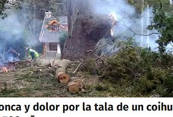 Un vecino del barrio Lomas del Correntoso de Villa La Angostura se indignó al constatar que unos obreros de una obra lindante habían talado un coihue de 500 años que estaba dentro de su propiedad.