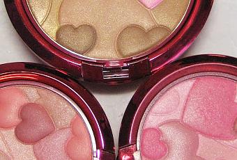 El packaging de la línea Happy Booster (la de los corazoncitos) es igual: compartimento bajo los polvos con espejo y brochita plana.