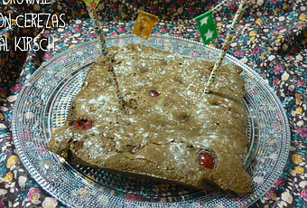 Lo primero que asocié con este ingrediente, cerezas, chocolate, ... ahhhhhh la famosa Tarta Selva negra, Pero no, no me veo capacitada para hacer tal maravilla. Así que he improvisado y tomando como base el chocolate, he tuneado la receta del Brownie que hago normalmente y le he añadido las cerezas y el kirsch.