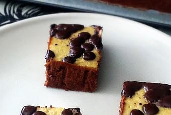 Unos minutos antes repartimos por encima los chips de chocolate y seguimos horneando hasta que veamos que queda ligeramente dorado y la mezcla cuajada.