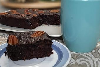 1/2 cucharadita de esencia de vainilla (opcional) 1/2 cucharadita de esencia de turrón (opcional) 1/3 taza de cacao sin azúcares añadidos 1/2 taza de harina de frutos secos 1/2 cucharadita de bicarbonato canela al gusto (opcional) 3 onzas de chocolate 85% sin azúcar añadido, troceadas 3 nueces troceadas (para decorar) Precalentar el horno a 180ºC.