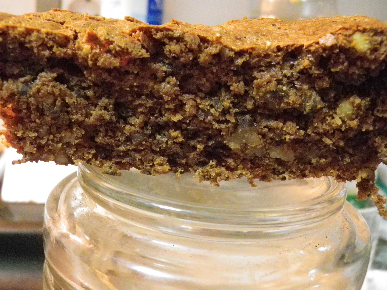 - Incorporamos la harina, la levadura y la sal y programe 4 segundos, velocidad 2.-Incorporamos las nueces troceadas y las mezclamos bien con la espátula, hasta que la mezcla quede homogénea.-Forramos un molde rectangular bajito con papel de horno.