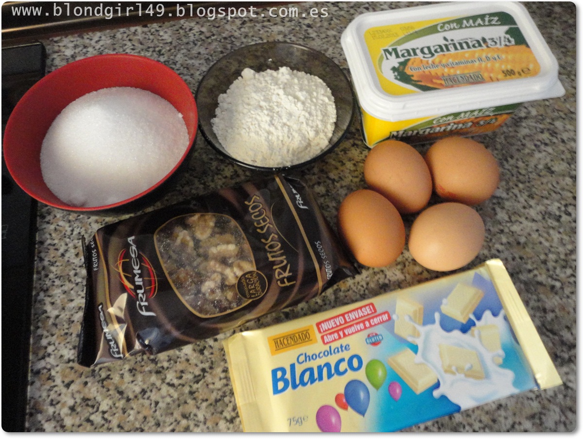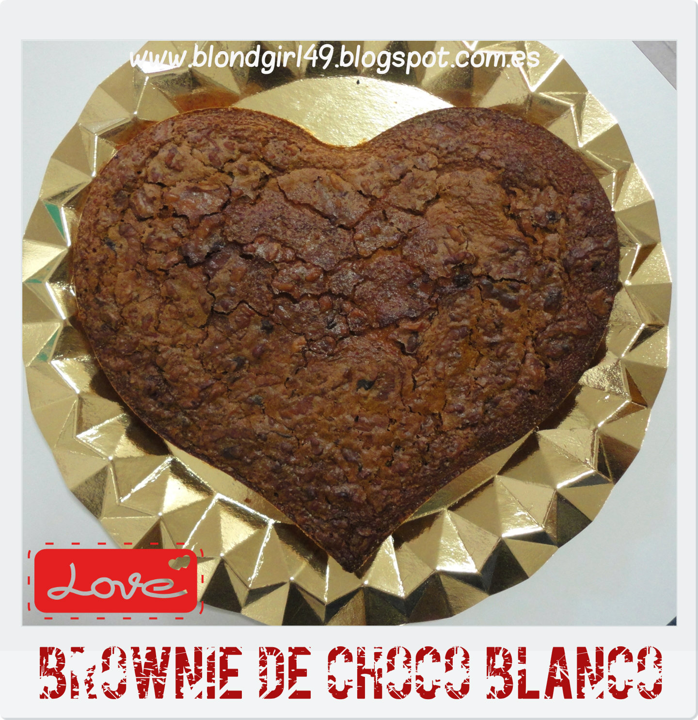 Hoy vengo con una receta que hacía tiempo que tenía ganas de probar y fue tan bueno el resultado que os lo traigo para que lo probéis en casa. Hace tiempo os publiqué una entradita en la que os enseñaba la receta del Brownie con chocolate y nueces (aquí os dejo el enlace) y os comentaba que tenía en mente una variante a esta receta jeje tenía ganas de experimentar un pelín así que el resultado ha sido el mismo pero con chocolate blanco. Tengo que decir que si ya el brownie de toda la vida os gusta este os encantará más (a no ser que no os guste el choco blanco claro^^) pero los que la han (incluyéndome a mi también) les ha gustado bastante más esta que no la de chocolate negro (que también estaba de vicio!!), pero esta tiene un punto más dulzón pero tampoco demasiado (pero sí mas que la otra^^) Os animo a que probéis esta variante, lleva exactamente los mismos ingredientes que os enseñé en la otra entrada, pero el cambio es el chocolate, en esta ocasión empleo el blanco ^^ Ingredientes:200gr de margarina200gr de azúcar80gr de harina4 huevos150gr de chocolate blancoNuecesELABORACIÓN:0.Antes de nada encendemos el horno y lo dejamos calentándose a 180ºC1.Ponemos la mantequilla al baño maría o microondas para que se derrita y lo pondremos en un bol,2.seguidamente iremos añadiendo los huevos e iremos batiendo y añadiremos el azúcar,3.incorporaremos la harina tamizada,4. Derretiremos al baño maría el chocolate blanco y mientras tanto iremos haciendo trozos más pequeños con las nueces. Cuando el chocolate esté derretido lo incorporaremos al bol y también las nueces.5. Untamos con margarina un envase apto para el horno e incorporaremos la mezcla anterior. Introduciremos en el horno durante 40 minutos, pero cuando lleguemos a 30 minutos si vemos que está tostada ya la parte superior del brownie le pondremos una hoja de papel vegetal para que no se nos queme.7. Cuando hayan pasado los 40 minutos sacaremos los moldes del horno, cuando ya estén tibios desmoldaremos. Lo bueno de esta receta es que podéis hacerla en tartera (para que quede como un brownie) o sino como si fueran muffins. Yo quería hacer un brownie con un molde de corazón que tengo, pero como ya tenía la altura que yo quería y todavía me sobraba mezcla la puse en otro molde que tengo en tamaño de muffins en forma de corazoncitos (el de la foto superior). Como veréis me quedaron algo subiditas pero me supongo que fue porque el molde de muffins es más pequeño porque el material del molde es el mismo y los cociné al mismo tiempo así que no puede ser otro motivo. Como podeís observar la parte de arriba siempre tiene que quedar bien agrietada ya que adquiere consistencia de galleta o casi galleta y por dentro más esponjosito.Este es el grande que hice para llevar a casa de mi chico para que comiéramos todos juntos^^, como véis este si quedó bien planito :)¿Qué os ha parecido la variante? ¿alguna ha probado los brownies de choco blanco?Un besito enorme ¡¡feliz martes!!