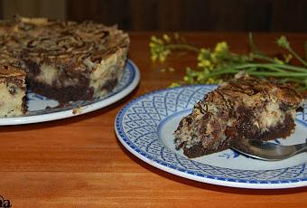 Ponemos por encima la mezcla de queso que hemos preparado y añadimos la taza con el chocolate que teniamos reservada haciendo unas lineas sobre nuestra mezcla blanca. Con la ayuda de un palillo formamos unos remolinos.
