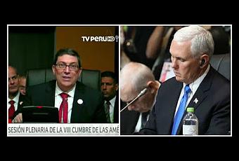 Réplica de Bruno Rodríguez Parrilla, ministro de Relaciones Exteriores de Cuba, a Mike Pence, vicepresidente de Estados Unidos, en la VIII Cumbre de las Américas, en Lima, Perú, el 14 de abril de 2018El señor Vicepresidente de los Estados Unidos de América parece mal informado, ignora la realidad, oculta la verdad.
