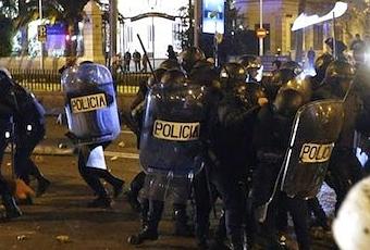A toda esta agresividad sin sentido hecho de menos, que los organizadores de la manifestación, fueran los primeros de indignarse contra estas bestias usurpadores de una protesta justa y con todo el derecho , por el momento económico tan crítico que estamos pasando y que ha hundido en la miseria a numerosas familias. No entiendo a una izquierda que ve de forma diferente según quienes son los violentos, y en su mundo, entre los policías y verdugos…siempre los manifestantes son victimas.