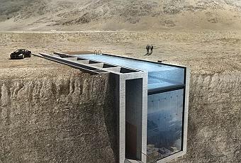 En una literal integración innovadora, Casa Brutale penetra el paisaje. Los beneficios de un mecanismo homeostático subterráneo de construcción perfeccionan el aislamiento térmico de la tierra circundante y las propiedades de refrigeración de la piscina. El impacto óptico del edificio en el paisaje es mínimo, con sólo una fachada en el lado del acantilado y ningún volumen emergente desde el nivel del suelo.