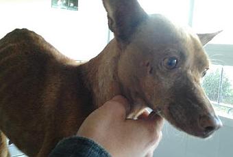 "Yendo con el coche por la Autovía a Córdoba vi como los coches que iban delante de mí esquivaban un bulto en el asfalto. Cuando me acerqué vi a la perra en medio de la carretera, tendida y moviendo sólo la cabeza asustada viendo venir los coches hacia ella. Intentaba levantarse pero no podía. Estaba en estado de shock por el fuerte golpe. Sangraba por el hocico. Paré el coche en el andén y la recogí"