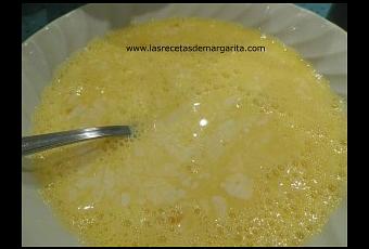 Vertimos la mezcla de huevos y leche restante sobre el molde. Repartimos bien.