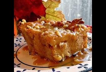 1/4 taza de mantequilla derretida /*/ 2 tazas de mitad y mitad (1 de leche y 1 de nata mezcladas) /*/ 2 tazas de leche /*/ 500 gr de pan cortado en trozos pequeños /*/ 3 huevos ligeramente batidos /*/ 3 tazas de azúcar blanco /*/ 4 cucharaditas de extracto de vainilla /*/ 1 1/2 cucharaditas de canela en polvo /*/ 1/4 de taza de pasas /*/Para la salsa: 225 gr de mantequilla sin sal /*/ 1 taza de crema de leche /*/ 1 taza de azúcar morena /*/ 1/2 taza de nueces picadas tostadas