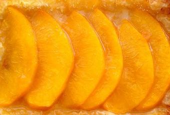 - Colocáis en el centro unas rodajas finas de melocotón.