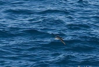 Pardela pichoneta (Puffinus puffinus)Después de unos cuantos días con viento del nordeste y de las fuertes rachas de oeste de hace dos días ayer el viento dio una tregua soplando una suave brisa que aprovecharon las pardelas y los charranes para continuar su viaje hacia el sur.