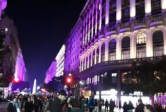 La primer foto es un poco más antigua, de octubre del año pasado y la tomé en la noche de los museos, que es una celebración que se realiza cada año en nuestra ciudad y que acerca los museos a la gente, todos los museos de la ciudad que son más de 250, abren sus puertas en forma gratuita para que el que lo desee pueda visitarlos, esto además está potenciado por el echo que todos los transportes públicos también son gratuitos ese día y se permite estacionamiento en las calles sin restricciones. La foto muestra la Avenida Presidente Roque Sáenz Peña con todos sus bellos edificios de principios del siglo XX iluminados. Como fondo nuestro símbolo distintivo: el Obelisco.