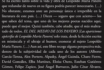 Ayer me puse a dormir con una gran noticia. Gsús Bonilla, autor deEl del medio de los Panero, ha resultado finalista del Premio Nacional de la Crítica por su poemario Comida para perros. Desde este blog, se le da la enhorabuena, más que merecida. Y seguimos con el libro suyo que nos ocupa y con el texto de la contraportada: Contra, lomo y frontal, pincha sobre la imagen: Y aquí la cover, deconstruida y reconstruida, contra y lomo y frontal y solapa, pincha sobre la imagen: