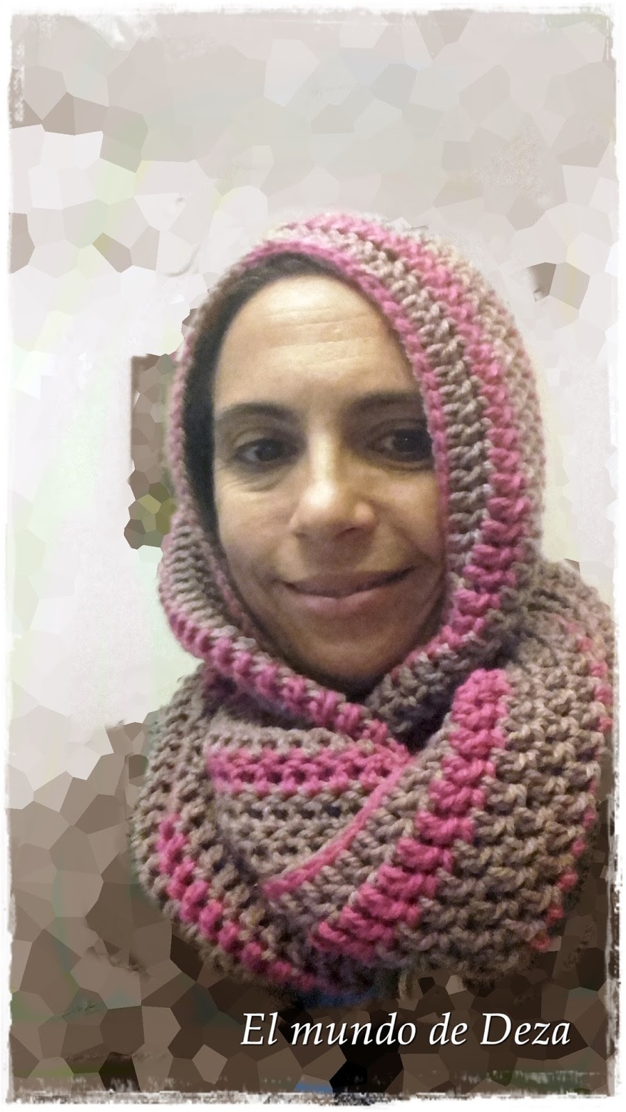 Y ya tenemos nuestra bufanda capucha, lista para lucirla y abrigarnos.
