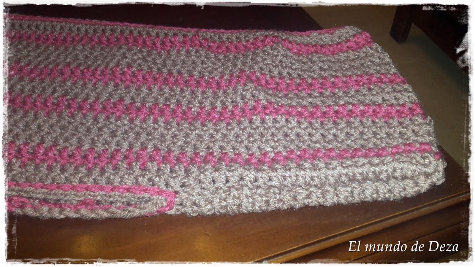 4.- una vez terminado doblamos la labor, y cosemos un lateral unos 20cm. (yo lo cerré con punto deslizado)