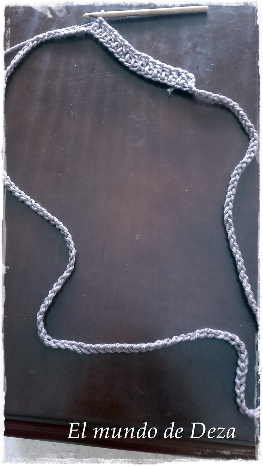 1.- Tejemos una cadeneta del tamaño que nos de dos vueltas amplias al cuello. ( yo la hice de metro y medio)cerramos con punto enano a la primera cadeneta que comenzamos para que nos quede la labor cerrada.