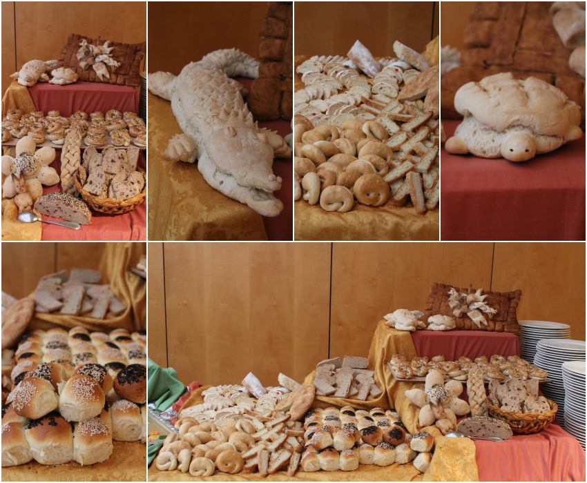 En este bufet descubrimos nuestra vena artística con la decoración de los panes. Un cocodrilo, una tortuga, flores, lazos, trenzas, un conejo (que parece diabólico), cestas de mimbre hechas con pan... Además de todo esto también hicimos el pan: